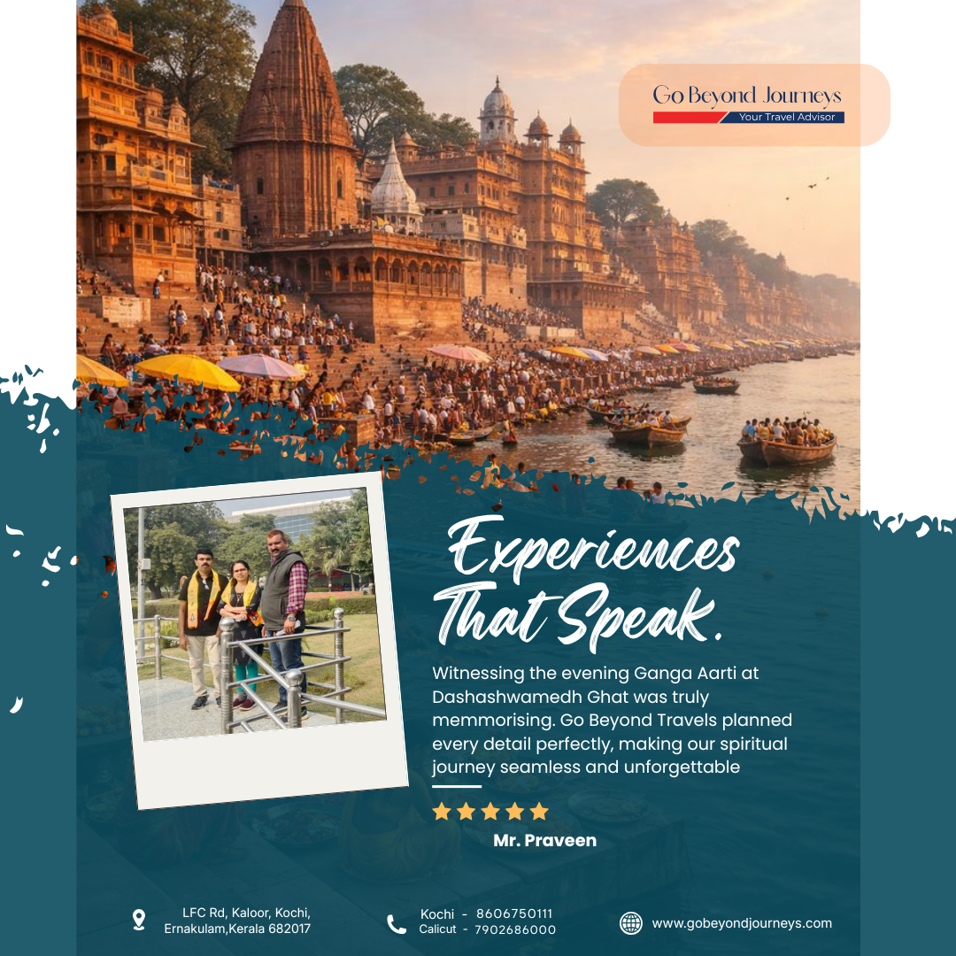 Witnessing the evening Ganga Aarti at Dashashwamedh Ghat was truly memmorising. Go Beyond Travels planned every detail perfectly, making our spiritual journey seamless and unforgettable